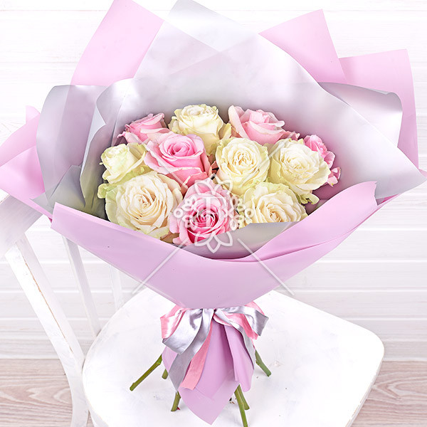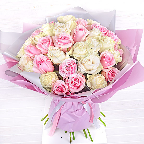«Изысканный аромат» - букет из нежных розовых и бело-кремовых роз, который не оставит равнодушным женское сердце. Прелесть обворожительных розовых лепестков, их чарующий аромат и несравненная красота создают поистине классическую и  стильную цветочную композицию.